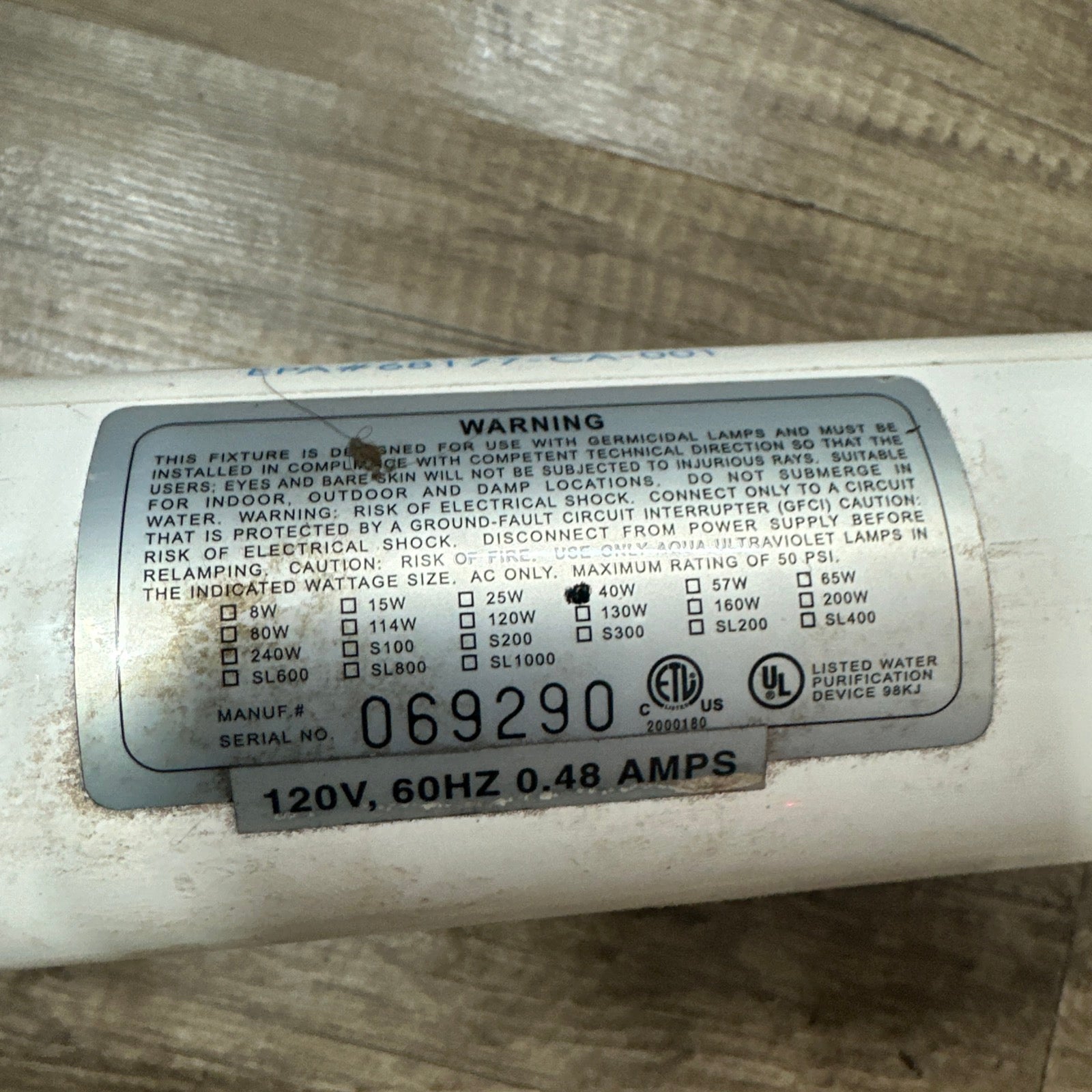 Aqua Ultraviolet 40 watt UV Clarifier/Sterilizer, 2" White w/ Wiper, A00060 (USED TESTED NEEDS NEW BULB)