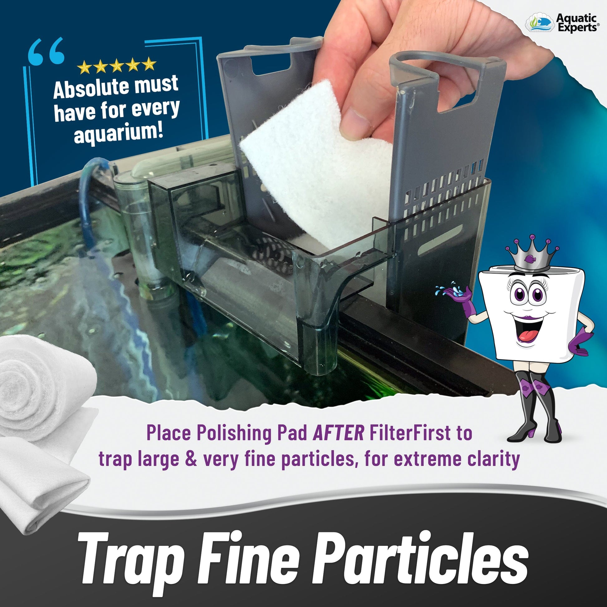 - TRAPS FINE PARTICLES - Our 100 Micron Polishing Filter Pads’ dense fiber network traps large to very fine particles floating in your freshwater or saltwater aquarium to produce sparkling clear water. Its durable design allows THIS PAD TO BE CLEANED AND REUSED MANY TIMES.