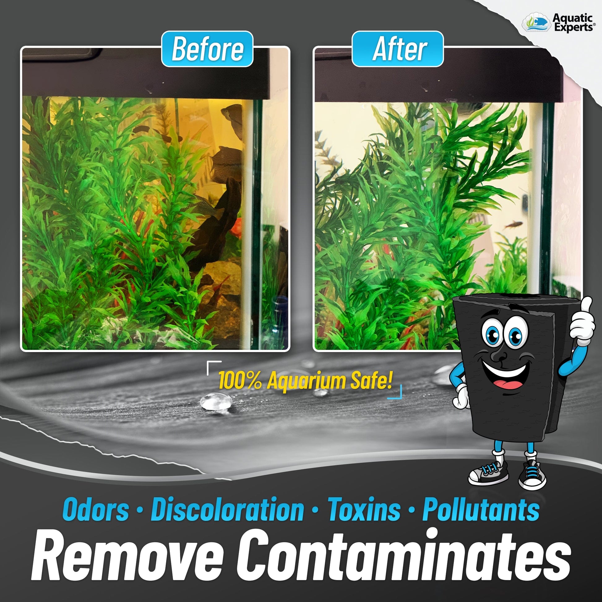 - ELIMINATES ODOR AND DISCOLORATION! - Activated carbon, also known as activated charcoal, removes foul odors from aquarium and pond water LEAVING A CRISP CLEAN SMELL. The thin carbon coating creates a large surface area for the carbon to trap and remove water discoloration, residual medications, toxins, pollutants, and more to keep your water crystal clear.