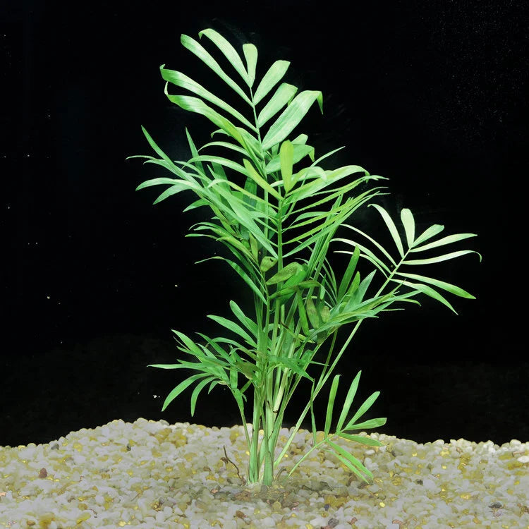 The Bella Palm, also known as Neanthe Bella Palm or Parlor Palm (Chamaedorea elegans), is a popular, compact palm as noted by Gardenia.net. It's well-suited for indoor environments, including aquariums and terrariums. While not a true aquatic plant, it can tolerate being partially submerged for short periods, making it ideal for paludariums or as a temporary display in aquariums. The plant is known for its elegant, feathery fronds, ease of care, and ability to thrive in low-light conditions.