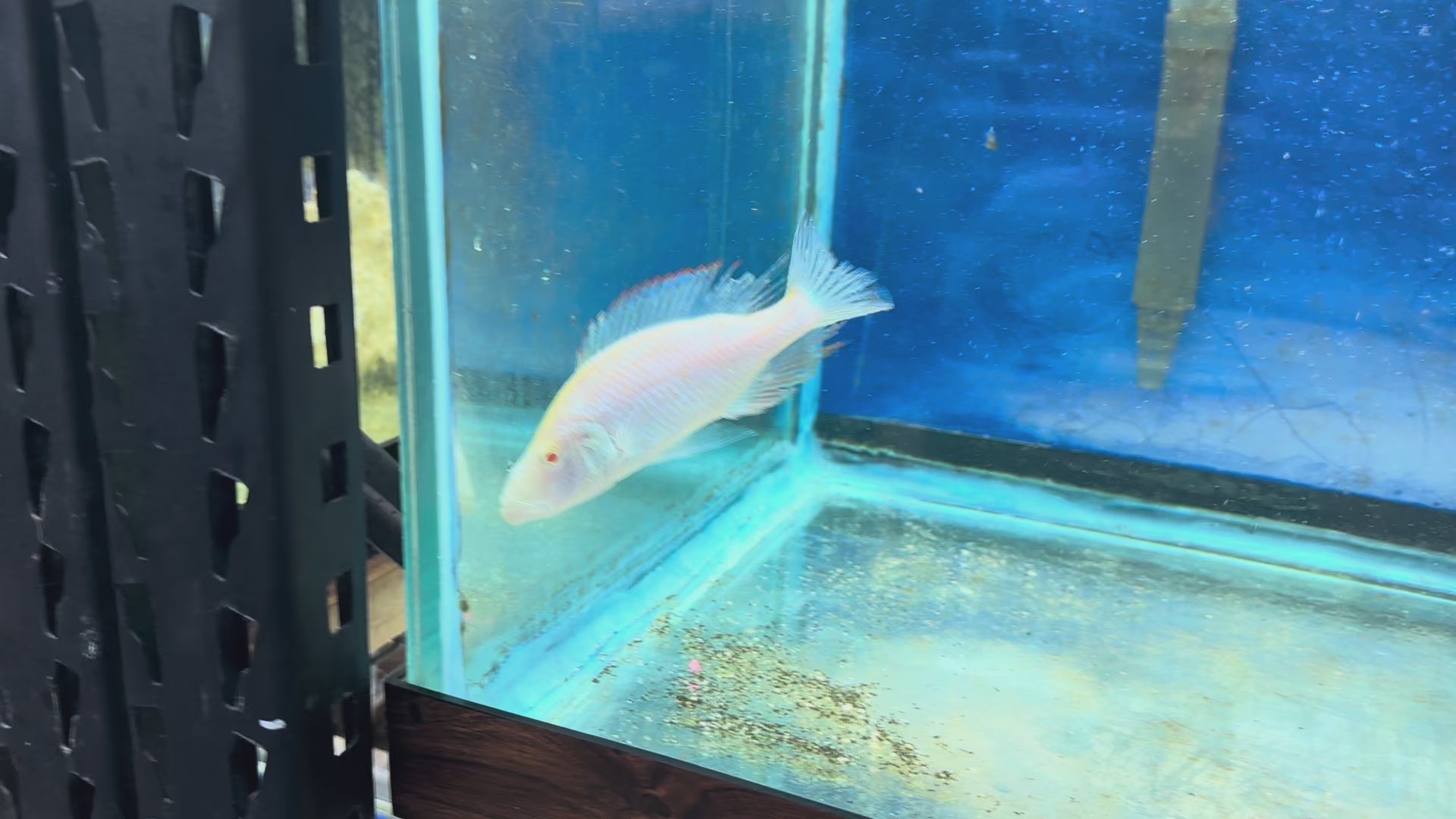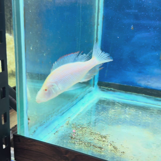 The Compressiceps Albino Cichlid, also known as the Albino Malawi Eyebiter (Dimidiochromis compressiceps), is a striking freshwater fish known for its unique albino coloration and predatory behavior. It is a popular choice among experienced aquarists for its captivating appearance and interesting personality.