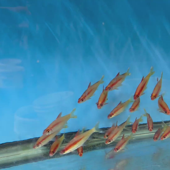 A fish with many names, the Roseline Shark, Redline Torpedo Shark, or Denisonii Barb is a vividly colored schooling fish found in the fast moving streams of Western India. With their peaceful, active nature and vibrant red, yellow, and black coloration, this fish has become a favorite in the aquarium hobby – especially among planted tank hobbyists. Although hardy, these fish prefer well-oxygenated water with some current and will display their best colors when excellent water quality is maintained. As a shoaling fish in the wild, they are best kept in groups of 5 or more in the aquarium.
