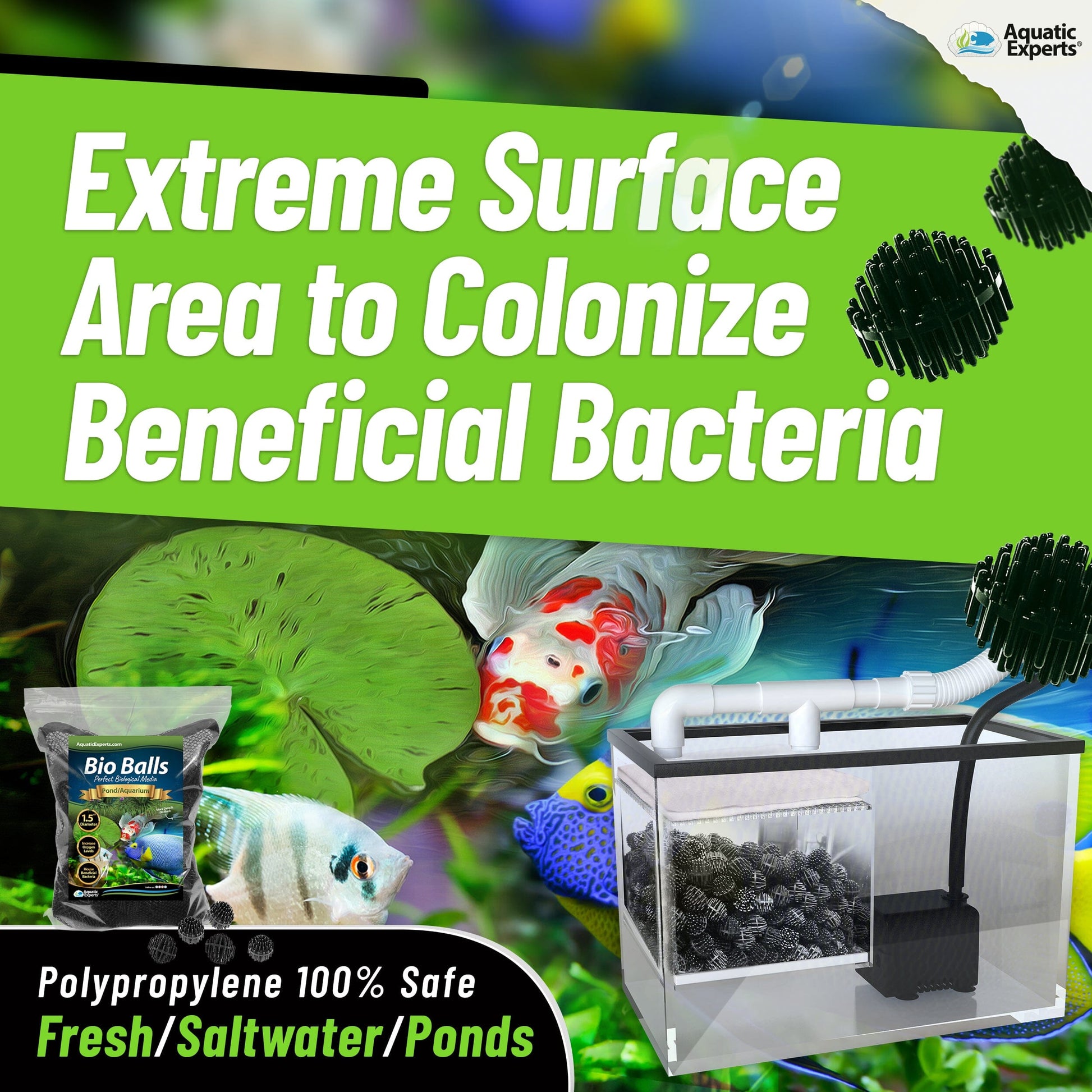 - OUTSTANDING FILTRATION: Each bio ball is covered in spines to dramatically increase the surface area of each ball to nearly 2 square feet providing space for a massive number of beneficial bacteria to colonize. These good bacteria break down harmful organic waste. You will receive approximately 300 1-1/2-inch bio balls in a mesh bag. Just rinse and use.