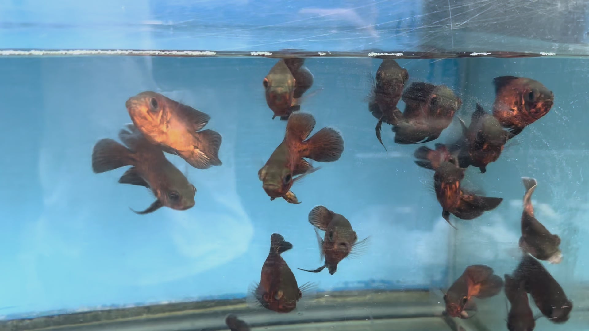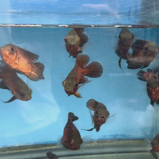 The "Red Oscar" is a color variation of the Astronotus ocellatus species, commonly known as the Oscar fish. It's characterized by its vibrant red or orange coloration, often with black markings or spots. These fish are popular aquarium inhabitants, known for their intelligence and interactive behavior with their keepers.