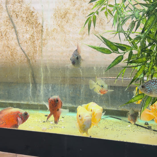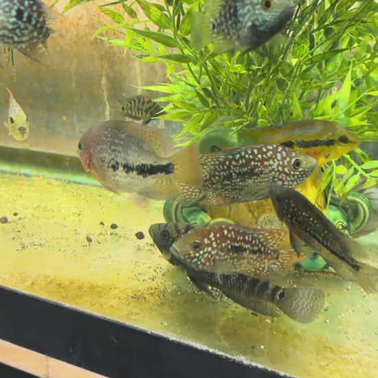 Excellent 8 Blood Vieja - Already showing Red and eating everything in sight. 5 Stars for a hard to find fish. ⭐️⭐️⭐️⭐️⭐️